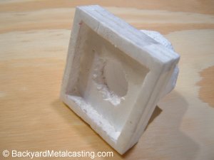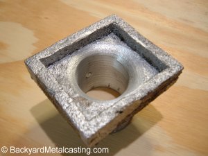The backside of the pattern is recessed so the cast nozzle will fit on the blower. Yes this is crude but it's just a cheap experiment. |