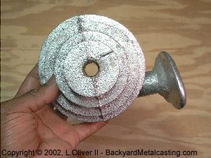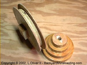 I needed some pulleys pretty badly to continue on with part 4 of my homemade lathe project. I only saw one source online and they were pretty expensive (16 bucks each!). So in the spirit of The Lab (read that; lacking the necessary finances) I set off to find a way to cast my own.--April./02/2002