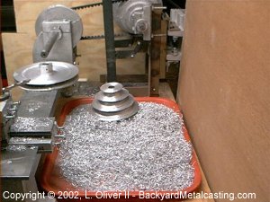 This is just another picture of the shavings from those two pulleys. The step pulley is nice and snuggled up in it's nest... |