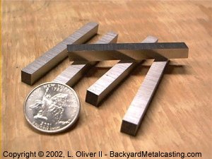 I had ground a cutter bit from another thread cutting tap but decided to buy some real lathe tool material. The cheapest I could find were these for $3.95 each. The NY quarter is for size comparison. |