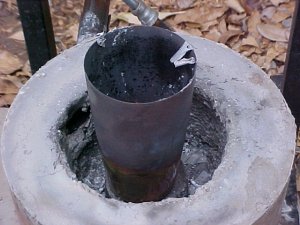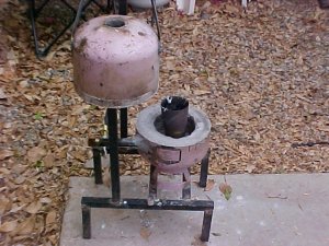 Here is another example of how easy it can be to get into metalcasting. David has built this small furnace from scraps he scrounged up. It's a simple efficient design and does the job. And probably best of all, he obtained all the information needed to build it off the internet!!