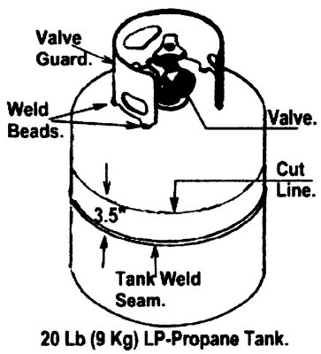 In the interest of personal safety it is recommended that you use a brand NEW tank that has NEVER held any gas, or if using and old tank, make sure it is thoroughly empty of all traces of LP or propane gas. The cutting of LP/propane gas tanks has the same, or greater danger than cutting or welding old petrol tanks. You could be dealing with a potential bomb. If you have to use an old tank, make sure you fill the tank 3/4 full of water before using an Oxy-acet. cutting torch, or when cutting with a metal cut off disk on an angle grinder. Water will reduce the amount of air space in the tank; hence lessen chance of a blow up.