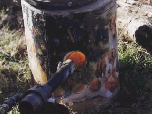 This right here is what backyard metalcasting is about. Put your foundry together inexpensively then get busy! And look at this, our fellow metalcaster began with the flowerpot crucible furnace then when he outgrew it he converted it to propane! That's what it's about... experimentation and fun! Thanks for the pics Larry.