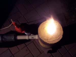 Hard to tell in this photo, but the flame went blue. Seemed like a significant event. This poured like a liquid. |