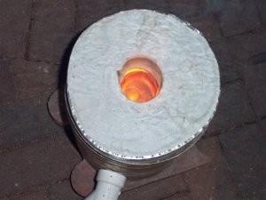 I'm new to this, and thought I would share some photos documenting how a beginner and his furnace look and feel. I built my furnace following the instructions found in the "Flowerpot crucible furnace." Hope to have a successful casting photo for you soon. | |