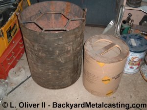 At last I've completed the body and lid and can install the refractory. The central form is next to the shell. This furnace will have a 12" diameter chamber 15" deep. My previous furnace was 10" diameter and the same depth. But since this body shell is larger I'll have 3" thick refractory walls. And as mentioned before I'm using 3,000 degree F. refractory since this furnace will be used mainly for ironcasting. And as I learned already cheap refractory won't cut it! The conclusion is on it's way... |