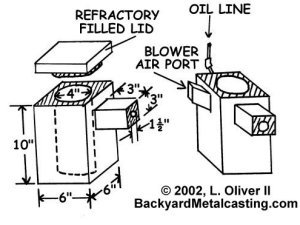 ...Thus I designed the G4 burner. It is basically a G2 burner on it's side. The flame blows straight out of the burner in a straight line. It doesn't need to turn any corners or angles thusly allowing the heat to easily enter the furnace rather than be absorbed by the burner's refractory. Additionally I further improved the oil and air mixing by producing a special "intake manifold" So the oil is broken up more finely. Notice I didn't mention the G3 burner. It was simply a G2 with an integrated refractory intake manifold. It was crap. |