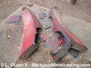 I just started yanking parts off the lathe and this former carriage casting was one of the first. I really dropped the hammer on it... Those iron chunks will go nicely into a crucible for melting. |